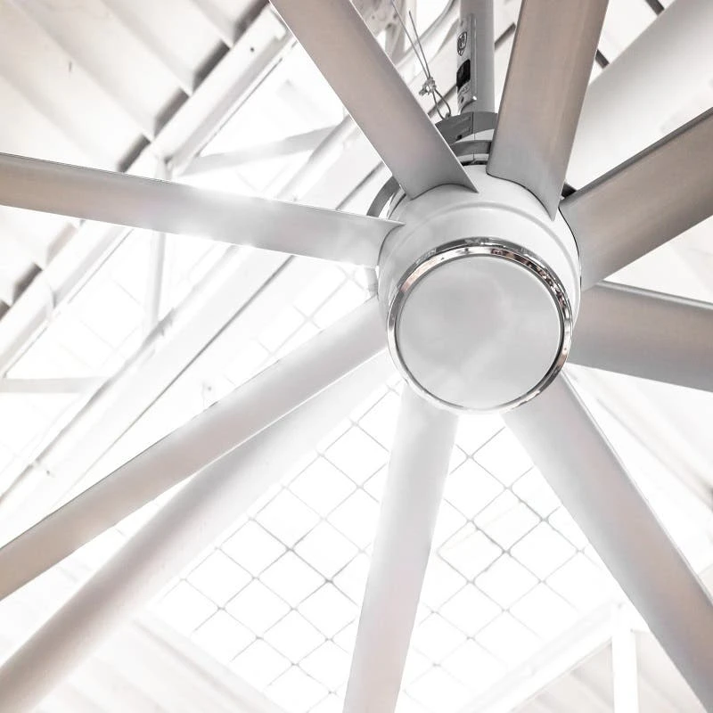 Designed for power, versatility, and sophistication, Essence transforms stuffy conditions and offers any setting a centerpiece of style; 8 patented, anodized-aluminum airfoils maximize performance without drag; Maintenance free, gearless drive motor delivers whisper-quiet airflow (35dBA) that keeps employees motivated, customers engaged, and guests in awe of your space.