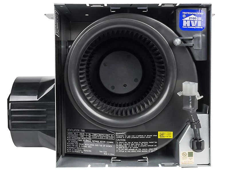 Delta BreezIntegrity ITG100RLED is ENERGY STAR® qualified with DC brushless motor engineered to run continuously for a minimum 70,000 hours; airflow rating of 100 CFM and loudness rating of 1.5 sones at 0.1” static pressure as certified by the Home Ventilating Institute (HVI); power consumption of 17.0 Watts with efficiency rating of 7.5 CFM/Watts at 0.1” static pressure; motor lock protection and self-compensating motor speed for intended airflow when static pressure is encountered. UL and cUL listed for tub/shower enclosure when used with GFCI-protected branch circuit wiring.