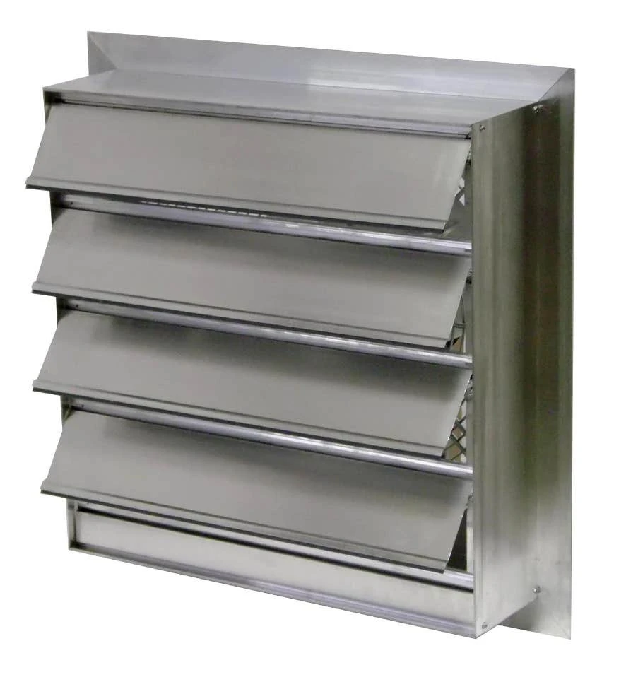 The direct drive, horizontal discharge, well-built AX24-4M exhaust fan is often used for general ventilation of factories, garages, warehouses, and other industrial or commercial structures. The housing of this exhaust fan are made of strong duty metal and have built-in shutters that automatically open when the fan starts and gravity shuts when the fan stops. This exhaust fan is three phase and has a single-speed motor.