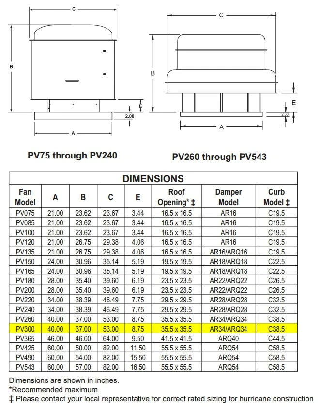 Model PV belt drive fans are centrifugal power roof ventilators designed for exhausting clean air. This model has a max CFM of 8,701. The aerodynamic design of the PV impeller and orifice results in high air performance and low sound. Typical applications for the PV includes a wide range of commercial, institutional, and industrial facilities such as schools, office buildings, hospitals, prisons, assembly areas, and restaurants.