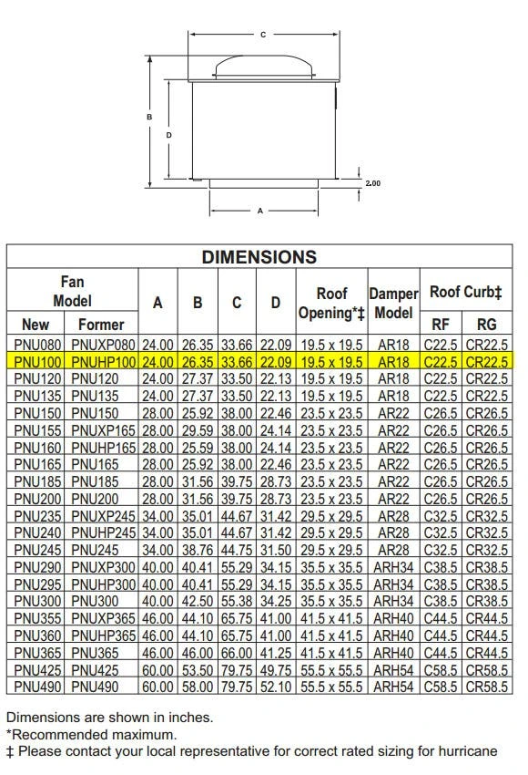 - Aluminum curb cap (except smoke exhaust fans)