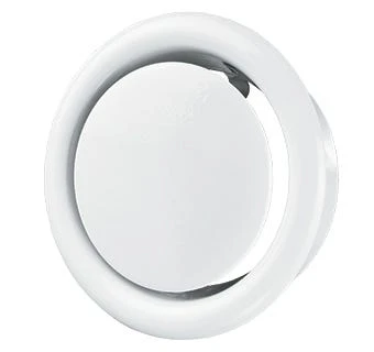 VENTS-US AM 125 VRF Air Metal Disc Valve Diffuser can be used for both air intake and exhaust. Recommended for ceiling and drop ceiling applications. 360 degree diffusion pattern. Made of steel with polymeric coating. Will not rust.